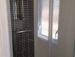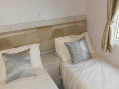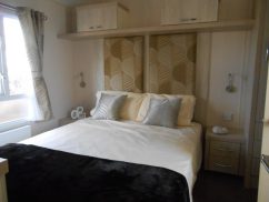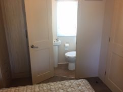 The main bedroom has a kingsize bed with a lift-up-storage mechanism, which gives additional storage space if required. It may not be a problem as there is lots of space in the cupboards above the bed, and in the double wardrobe to the side. There is also a dressing table and shelving, so if you are heading out for a meal or spending the night in the on-park bar, you can get ready in comfort. There is also an en-suite WC with wash basin which adds a little privacy to the main room.