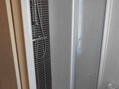 The shower room has a large shower cubicle, with WC and wash basin.